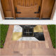 Modern take on an Art Deco inspired door mat, done in a geometric pattern of gold tone foil, white marble and black marble. A black and gold square, in the middle, has a golden yellow single letter monogram and white text ready to personalise. Lovely home decor and makes a great gift idea.
