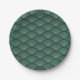 Abstract geometric wavy pattern in Art Deco style on with teal green and copper coloured waves and fan decoration on dark teal green colour background