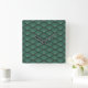 Abstract geometric wavy pattern in Art Deco style on with teal green and copper coloured waves and fan decoration on dark teal green colour background