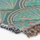 Abstract geometric wavy pattern in Art Deco style on with teal green and copper coloured waves and fan decoration on dark teal green colour background