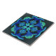 Art Deco style floral pattern with shades of blue, green on a textured pattern black background.