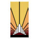 An iconic pattern of the sun rising from behind a stylized art deco shaped building. A simple yet elegant design, true to the era.