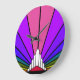 An iconic pattern of the sun rising from behind a stylized art deco shaped building. A simple yet elegant design, true to the era.