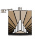An iconic pattern of the sun rising from behind a stylized art deco shaped building. A simple yet elegant design, true to the era.