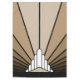An iconic pattern of the sun rising from behind a stylized art deco shaped building. A simple yet elegant design, true to the era.