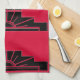 Art Deco Sunburst Pattern in Red and Black Tea Towel