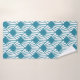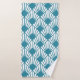 This towel set has an art deco design of diamonds with diagonal lines that look like fans in teal on a field of white.
