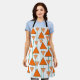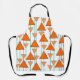 This apron has an art deco design of triangles strung on teal lines in two shades of orange.
