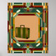 Museum-quality art print. Art Deco travel illustration style with streamlined shapes and geometric patterns depicting vintage travel suitcases, created in jewel tones with gold accents. Frame not included.