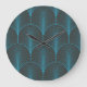 Art deco wallpaper: black and blue pattern large clock