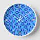 Art Deco Wallpaper Pattern, Cerulean Blue Wall Clock