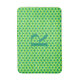 An Art Deco pattern bath mat based on the traditional wave pattern often seen in Japanese textiles, in the colours of jade, ranging from pale celery green to deep blue-green, with monogram