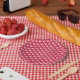 Art Deco wave pattern - red and fuchsia Paper Plate