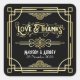 Art Deco Wedding Love & Thanks Gold Black Favour Square Sticker
