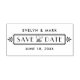 Announce your wedding in style with this vintage Art Deco inspired save the date stamp that features a decorative frame design, vintage style fonts, and custom text that can be personalised with the bride and groom names and wedding date.