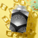 Do you like art deco inspired can coolers? This can cooler features a white art deco fan pattern on a black background.
