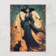 Art Deco Witch with Black Cat and Full Moon Postcard
