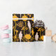 ART DECO YELLOW FLOWERS,WHITE PARROTS ON BLACK WRAPPING PAPER