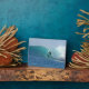 Plaque shown in a 5x7 size with a photo print of a surfer riding the wave.