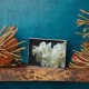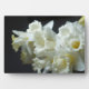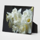 Plaque shown in a 5x7 size with a photo print of beautiful white daffodils.