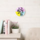 The clock did not take as long to arrive as I thought it might and was extremely well packaged. I didn't do the measurements so I didn't realize it is a little smaller than the average clock but that does not matter (just make sure you check if that's important to you).It is really nifty! It seems very solid and well made not flimsy at all. It has been going well and has kept good time in its few weeks on my wall. Nice product. Gets noticed too! Nicer in real life than the picture but true to the picture