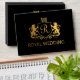 Design features a art nouveau design in shades of black and gold flourishes on a black backdrop. Calligraphy or type writing with the design artwork. This is a mix and match collection piece. Great for your wedding celebrations!