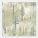 A delightful fantasy art illustration in a modern style depicts various tall, light, medium, and dark green pine trees, with a creamy background