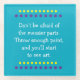 art quote on blue background - polka dot design - art is messy - coffee table art - dining room accent - glass