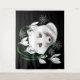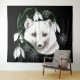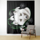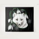 An Arctic fox gazes outward in this Art Nouveau inspired portrait. Four snowdrop flowers encircle the fox with white snowflakes. Set against a black backdrop