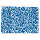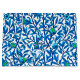 Large gift bag in a William Morris Art Nouveau tapestry pattern of exotic birds in a pomegranate tree, with cobalt and cerulean blue leaves, birds and fruit in cobalt blue and turquoise, accented with lime green, on a white background