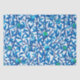 Tissue paper in a William Morris Art Nouveau tapestry pattern of exotic birds in a pomegranate tree, and fruit in cobalt blue and turquoise, accented with lime green, on  a white background