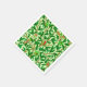 Paper napkins in a William Morris Art Nouveau tapestry pattern of exotic birds in a pomegranate tree, with emerald green leaves, birds and fruit in lime green and deep ruby red, and a pastel lime green background