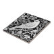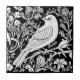 Ceramic tile in in an Art Nouveau inspired image of a little bird perched on a branch, surrounded by flowers, in white, with a black background that can be customised by selecting another background colour