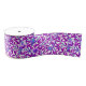 Ribbon in a William Morris Art Nouveau tapestry pattern of exotic birds in a pomegranate tree, with amethyst purple and violet leaves, birds and fruit in turquoise, violet and cobalt blue, and a white background