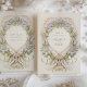 Step into the enchanting world of Art Nouveau with this stunning wedding invitation, a true homage to the era's passion for flowing natural forms and graceful floral patterns. The card captivates with its soft pastel palette, featuring serene shades of periwinkle blue, sage green, and gentle cream, accented by hints of peach. Artfully arranged lilies and hydrangea blooms cascade around a central, golden-hued frame, which elegantly presents the names of the bride and groom on the front and the wedding details on the back. Printed on premium paper with a subtle texture, this invitation is a masterpiece of design, promising a wedding day filled with beauty and grace.