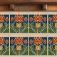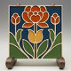 Embrace the timeless elegance of the Art Nouveau era with this exquisitely designed decorative ceramic tile. The design features a stunning, stylised central flower, capturing the organic, flowing lines characteristic of the period. The heart of the bloom glows with a vibrant, segmented orange-red, while graceful petals in a sophisticated dusty slate blue unfurl around it. The entire composition is brought to life through a beautiful tube-lining technique, where raised, creamy off-white lines define each element, creating a delightful tactile quality and a stained-glass effect. Flanked by soft sage green leaves and accented with intricate, wheel-like motifs, this tile is a balanced work of art. Perfect as a standout piece in a kitchen backsplash, a unique feature in a bathroom, or framed as a standalone art piece.