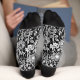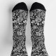 Socks in an Art Nouveau pattern based on a vintage William Morris floral damask wallpaper pattern, digitally enhanced and coloured in white on a black background
