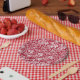 Art Nouveau Carnation Damask, Red and White Paper Plate