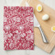 Art Nouveau Carnation Damask, Red and White Tea Towel
