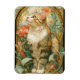 A majestic cat with lush, detailed fur sits gracefully among an ornate arrangement of flowers and swirling vines, all framed within an intricate Art Nouveau-style design. The cat gazes upward with serene wisdom, bathed in soft golden light, while the background blooms with rich pastel and earth tones, creating a sense of timeless beauty and natural elegance.