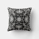 Art Nouveau textile pattern, based on a vintage William Morris chinoiserie ceramic tile design, digitally rendered and coloured for a soft, watercolor effect - charcoal grey and white on a black background throw pillow