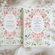 Announce your special day with this exquisite Art Nouveau-inspired wedding invitation. This artistic design features a graceful, hand-painted watercolor frame of blooming dogwood flowers in vibrant shades of coral, rosy pink, and soft peach. The elegant, symmetrical border is composed of swirling vines and leaves in sage green with subtle dusty blue accents, creating a natural oval space to showcase your wedding details. Set against a clean white background, the design is both fresh and timeless. This invitation is perfect for an artistic, garden, or spring wedding with a touch of vintage elegance.