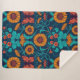 Art Nouveau daisies in blue and yellow Sherpa Blanket