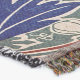 A quality printed throw has its advantages. This is a much finer weave throw than its loopier cousins, and though lighter, it is worth the investment for custom room accessorizing. The back is much prettier than the typical brown, and the fringe on the long sides very vivid, the selvage nicely done. Before photographing, I washed the throw in cold water, delicate, with a thicker woven throw the same size. On tumble dry low, this throw was dry in half the time as the other. This is a very practical quality if you use throws for furniture covers or to wrap up in frequently. The sleekness of the fabric makes it a great layer for accenting or protecting without the feeling of sitting on too much stuff. Perfect for napping or when you feel a light chill coming on. The color printing is beautiful and on this fabric, matched the design and color of my Photoshop image. This is an advantage for blending room fabrics and colors. The fringe on the short sides prints the colors from the design image and therefore varies from the side fringe. I streaked a white fractal line through the plaid pattern to give the illusion of weaving. This printed as crisp as an illusory thread, and put some white in the short side fringe, showing another advantage of print vs loomed- for artistic purposes, line lines, detail, and color integrity can be planned and preserved. My loomed throws have color limitations and more of a needlepoint texture. Print throws reproduce an exact image. The throw felt a little stiff straight out of the package, but this went away in the first delicate wash. Of course I searched the wash water for ink or bleeding and there was none.