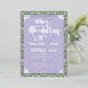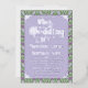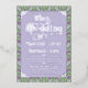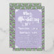 An elaborately detailed Art Nouveau wedding invitation featuring a pattern of lilac lovebirds and lavender butterflies in profile perched atop scrolling vines of purple thistle on a light green and cream dotted background. A pairing of elegant fonts has been carefully selected to accompany this invitation's decorative floral announcement text, however, they can be changed to meet your needs. You can change the foil color as well.