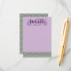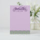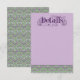 An elaborately detailed purple Art Nouveau details card bordered by a pattern of lilac lovebirds and lavender butterflies in profile perched atop scrolling vines of purple thistle on a light green and cream dotted background. The decorative floral announcement text color can be changed in the editing panel to meet your needs.