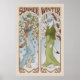 Art Nouveau inspired poster featuring an anthropomorphic ermine/stoat, showing off her summer and winter coats.