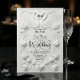 About the Design: This design mimics the look of a classical bas-relief stone carving using a printed "faux" embossed effect. The background is a matte shade of soft ivory, creating a subtle tone-on-tone texture. The central focal point features two white swans facing each other, their arched necks creating a heart shape, hovering above a silhouette of a bride and groom. The artwork is framed by a heavy, sculpted border of acanthus leaves, roses, and tulips that appear to be carved into the surface. The wedding details are set in sharp, black formal serif and calligraphy fonts, providing high contrast against the pale, faux-stone background.