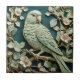 Art Nouveau Faux Relief R Parakeet Bird Teal Green Tile