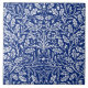 Ceramic tile in an Art Nouveau pattern of flowers, oak branches and leaves, based on a vintage William Morris textile design, digitally enhanced and coloured in deep cobalt blue and white